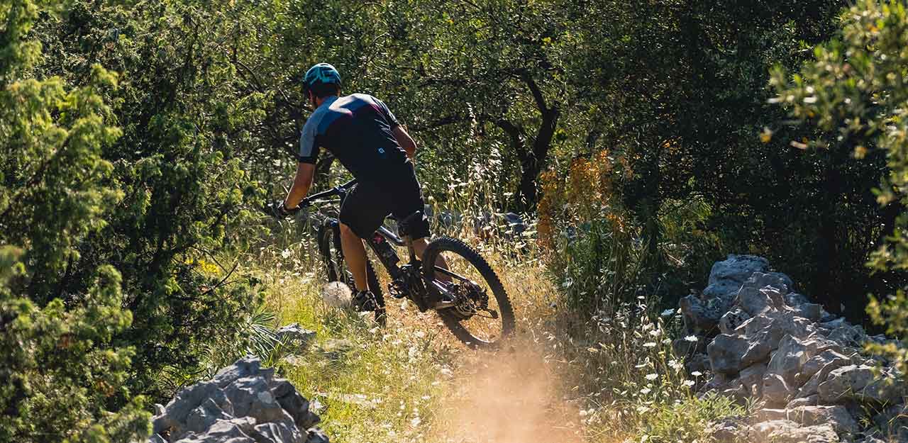 The 14.1 km long trail with the difference in altitude of 330 m is of lower physical demand, but it will often test your technical abilities. It consists of 4 climbs, the longest and most demanding of which is the one at the very start, which in the first 2km will elevate you to 150m above sea level with some steeper sections of 15% slope on asphalt and macadam roads, which most recreational cyclists will be able to conquer. The trail is characterised by gentle climbs and very dynamic descents of trail characteristics on single track trails with earthen and rocky surfaces. Everything from fine to technically demanding macadam roads, single tracks and loose trails await you. Two very steep single-track descents with a slope of up to -35% will test the technical abilities of even the most passionate cyclists and are sure to inject a dose of adrenaline. The track is ideal for MTB.