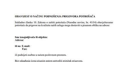 PODNOŠENJE PRIGOVORA POTROŠAČA